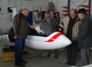 Zaujímavá bola i dielňa, kde sa robia generálne opravy vetroňov, ktorých hlavné časti /trup, krídla/ sú vyrobené z laminátu. Tu nás tiež zaujal vetroň nemeckého zákazníka, ktorý má za sedačkou pilota