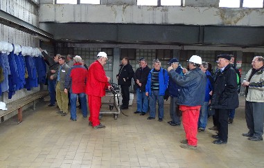 Každý z nás bol vyzbrojený dýchacím prístrojom, osvetlením a oblečený do pracovného plášťa s baníckou prilbou na hlave.