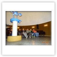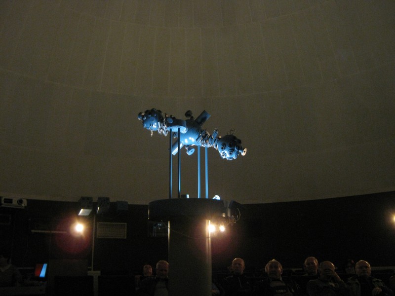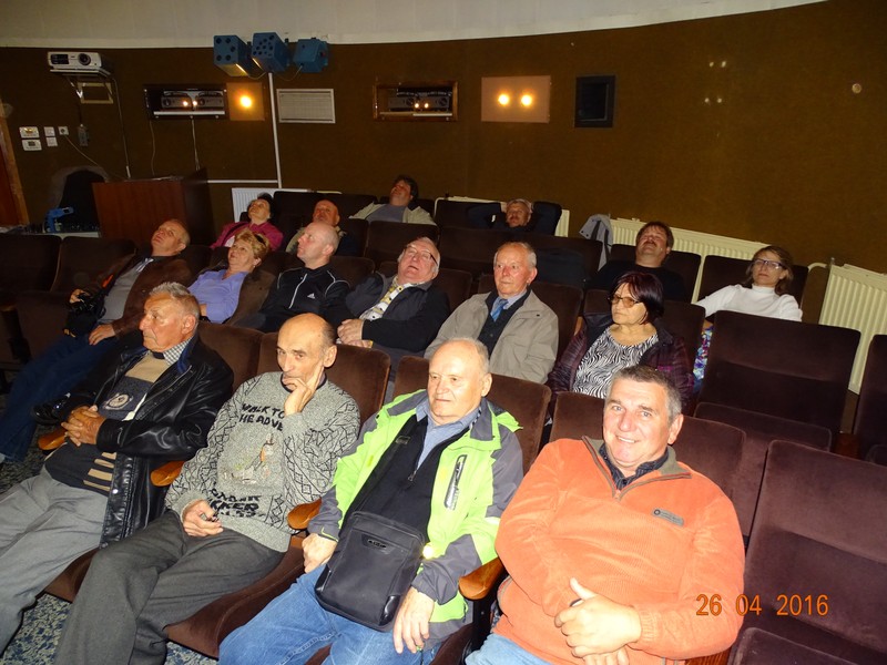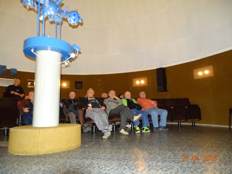 Po poobedňajšej prestávke sme smerovali do Hlohovca, na exkurziu hvezdárne a planetária M. R. Štefánika. Už nás čakala pracovníčka hvezdárne, ktorá nás zaviedla do tematickej miestnosti, usadila do pohodlných kresiel pre sledovanie nočnej oblohy, ktorá sa pred nami premietala. Vypočuli sme si odborný výklad o vzniku slnečnej sústavy o pohybe planét, vzniku hviezd, vytvorených obrazcoch . / kozoroh, vodnár, panna atd./ Prednáška bola prispôsobená pre nás väčšinou laikov, aby sme sa aspoň čiastočne dokázali zorientovať v jasnej nočnej oblohe