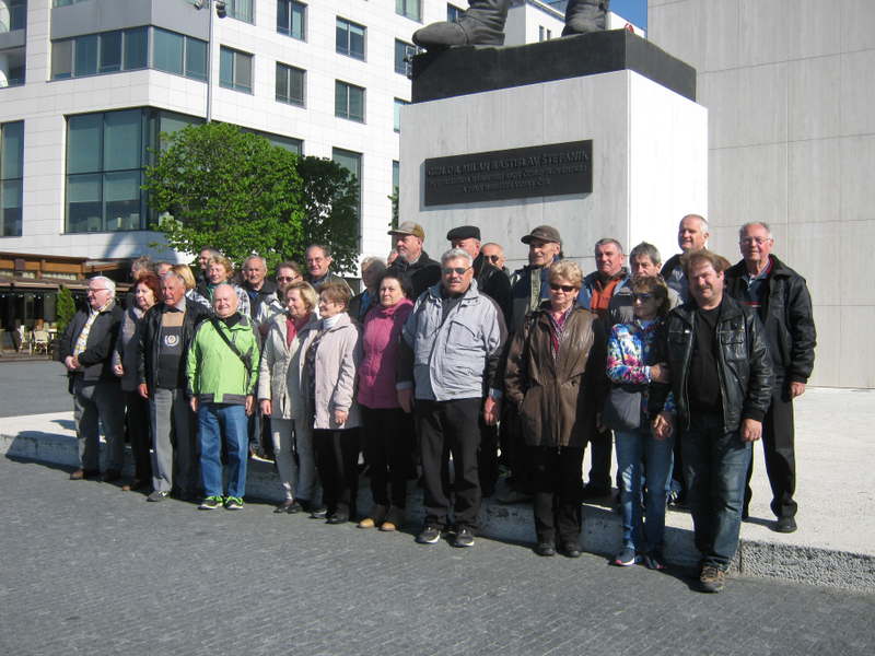 Prvou zastávkou sa stala Bratislava, pamätník M. R. Štefánika. Ešte pred vjazdom do Bratislavy /z obavy, že bude dopravná zápcha/ členka Štefánikovej spoločnosti p. Marta Malániková zoznámila so životom M. R. Štefánika, predovšetkým ako vedeckého pracovníka v oblasti astronómie, účastníka 1. svetovej vojny a jeho zásluhách na vzniku prvého slobodného štátu Čechov a Slovákov, ČSR.